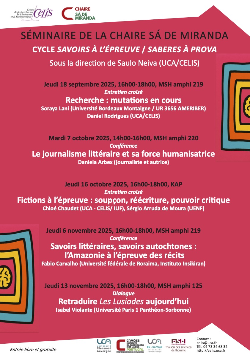 Séminaire de la Chaire Sá de Miranda : Cycle « Savoirs à l’épreuve/Saberes à prova »